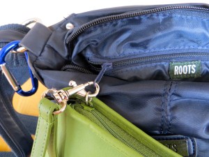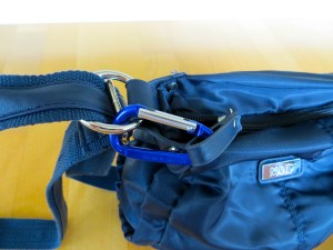 Now for the main zipper, I am taking a carabiner clip and will attach the zipper pull to the strap so the pickpockets cannot easily unzip the main compartment of my purse.