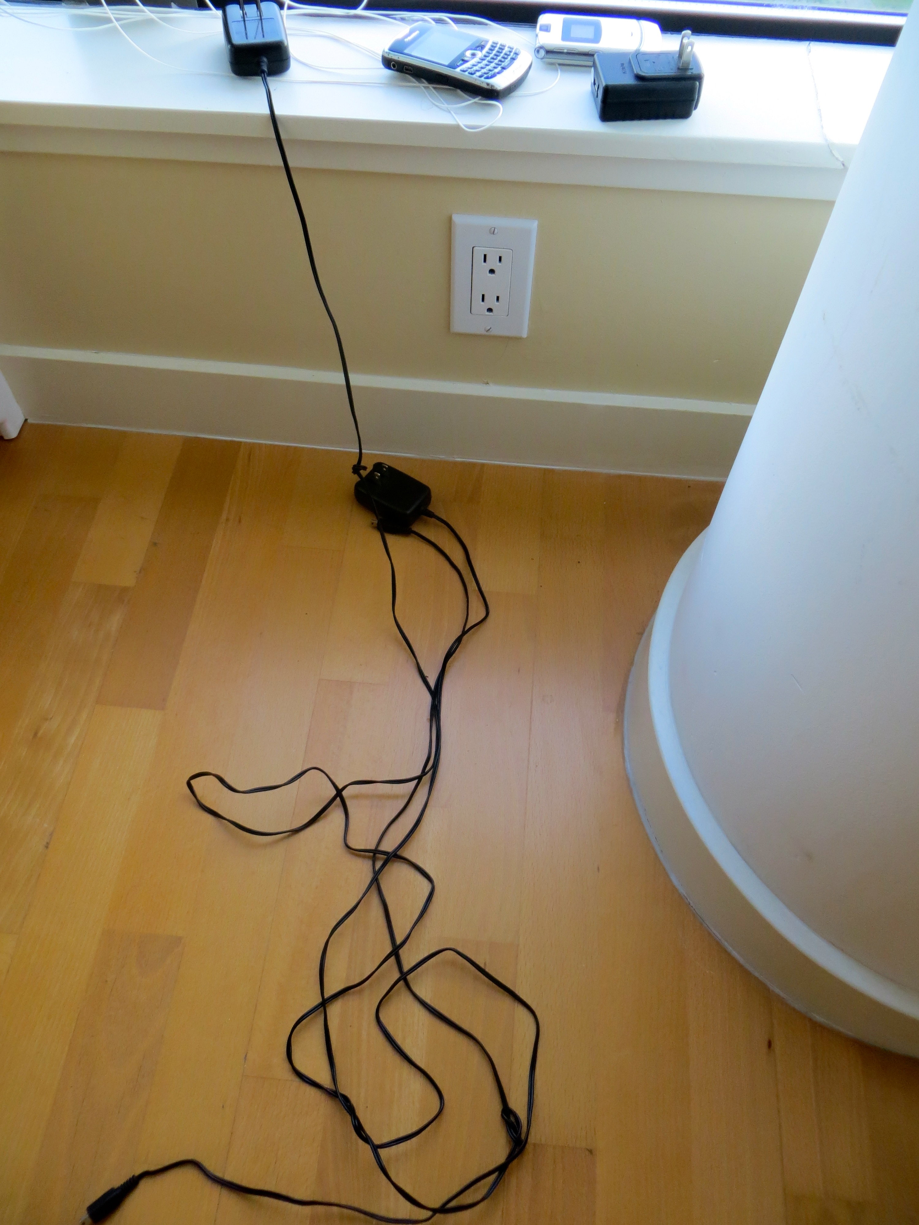 This was a situation where Armando was in complete panic when his iPhone died on him.  His phone is his lifeline and without it, he will spontaneously combust.  He frantically searched for all his old phones  and started charging them.  But when he got his iPhone working again, he just left the others in our dining area, two feet away from the candy wrapper, and they as well have been there for 8 days.  I’m standing my ground and making a point by leaving them there.  I will not give in…