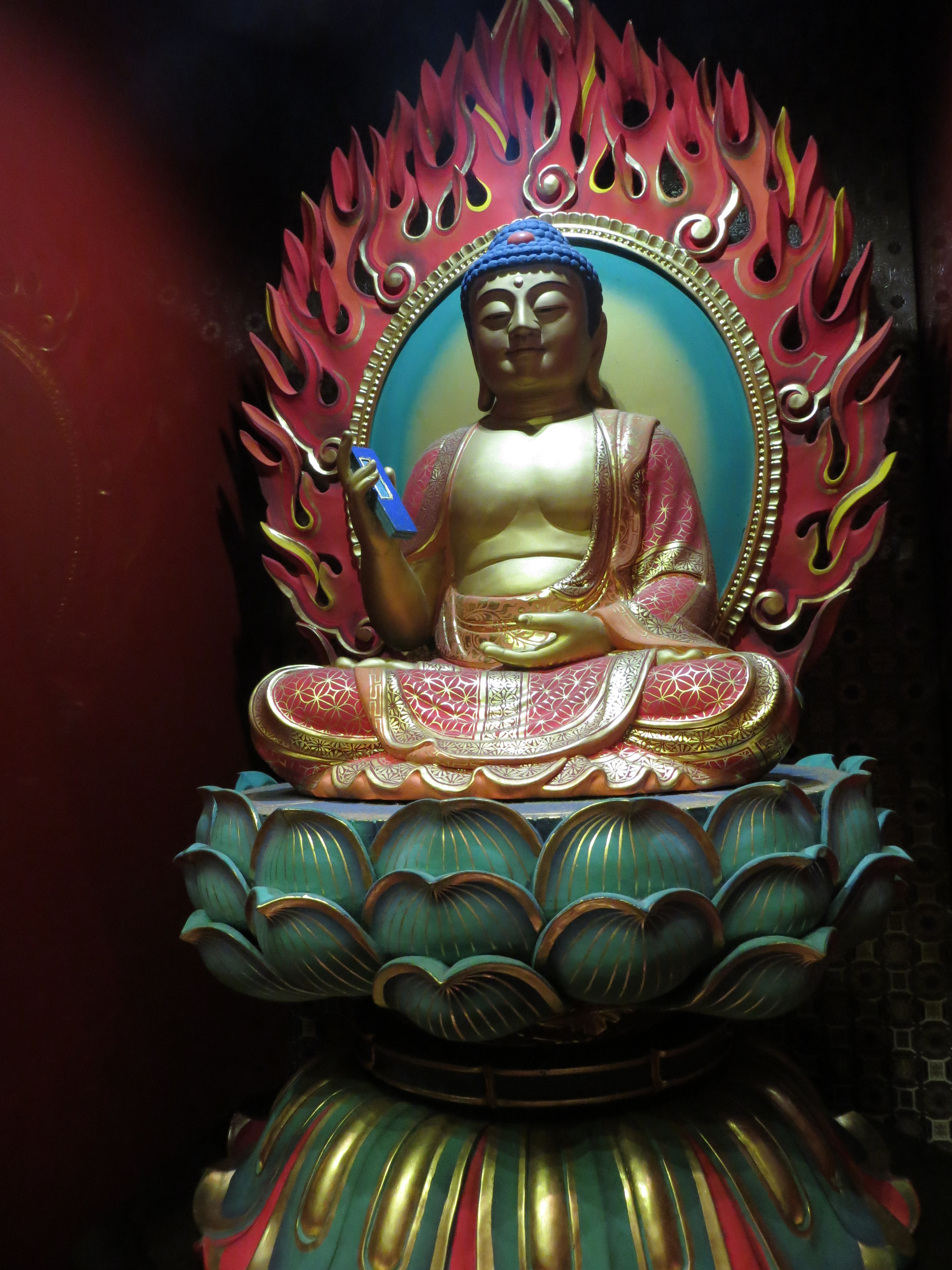 We were happy to get out of the shopping district that surrounded our hotel and found an unexpected surprise at the Buddha Tooth Relic Temple. As we walked through the temple we both felt a sense of happiness. It seemed joyous and welcoming. We both agreed that it was a stark contrast to the many Catholic churches that we’ve seen around the world that although magnificent, were dark and intimidating. It was an unexpected surprise for a place to give us such good vibes.