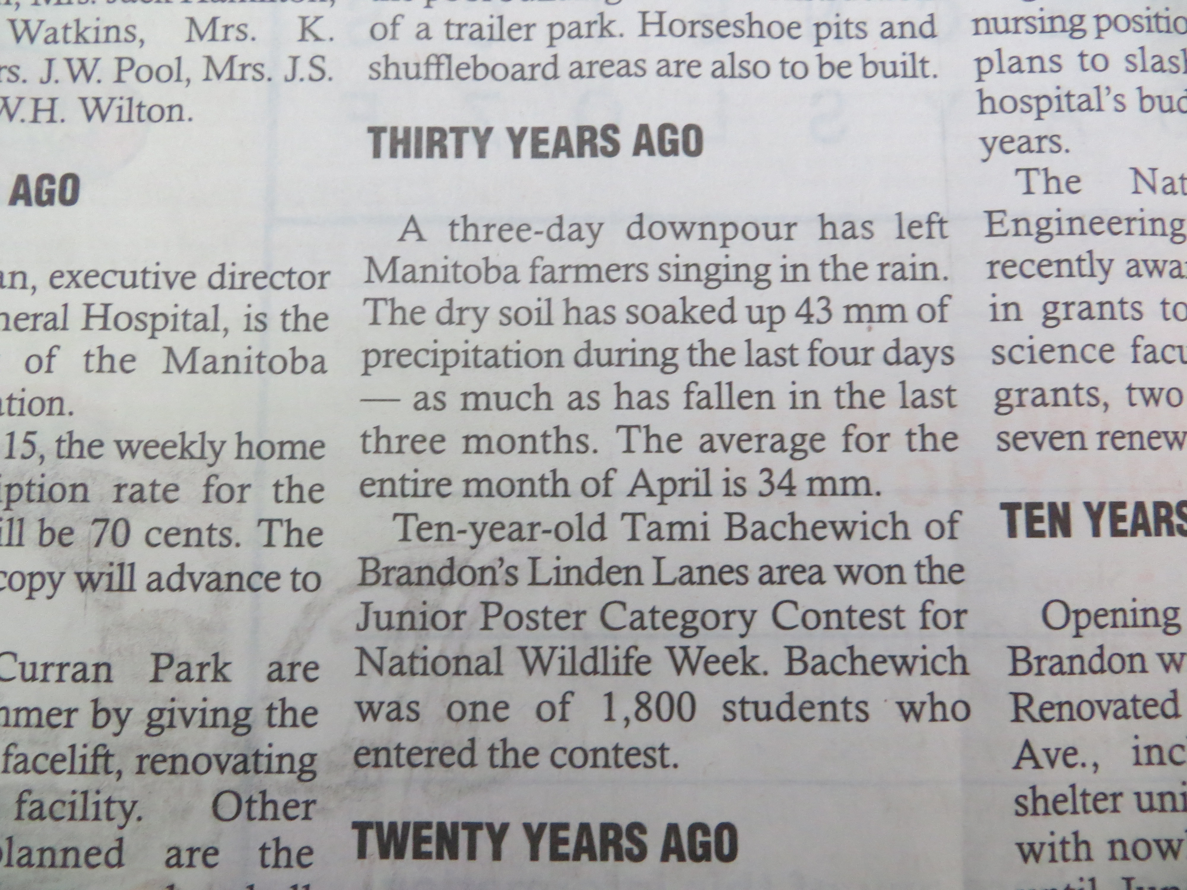 3. Sign that I’m getting older: My mom mailed me an article that was cut out of the local newspaper of the city I grew up in. The newspaper has been running a “looking back” column for years. They write about what happened in the city 20 years ago, 30 years ago, 40 years ago, and so on. As I looked at the article I gasped as I saw my name under “30 years ago”. Ugh!