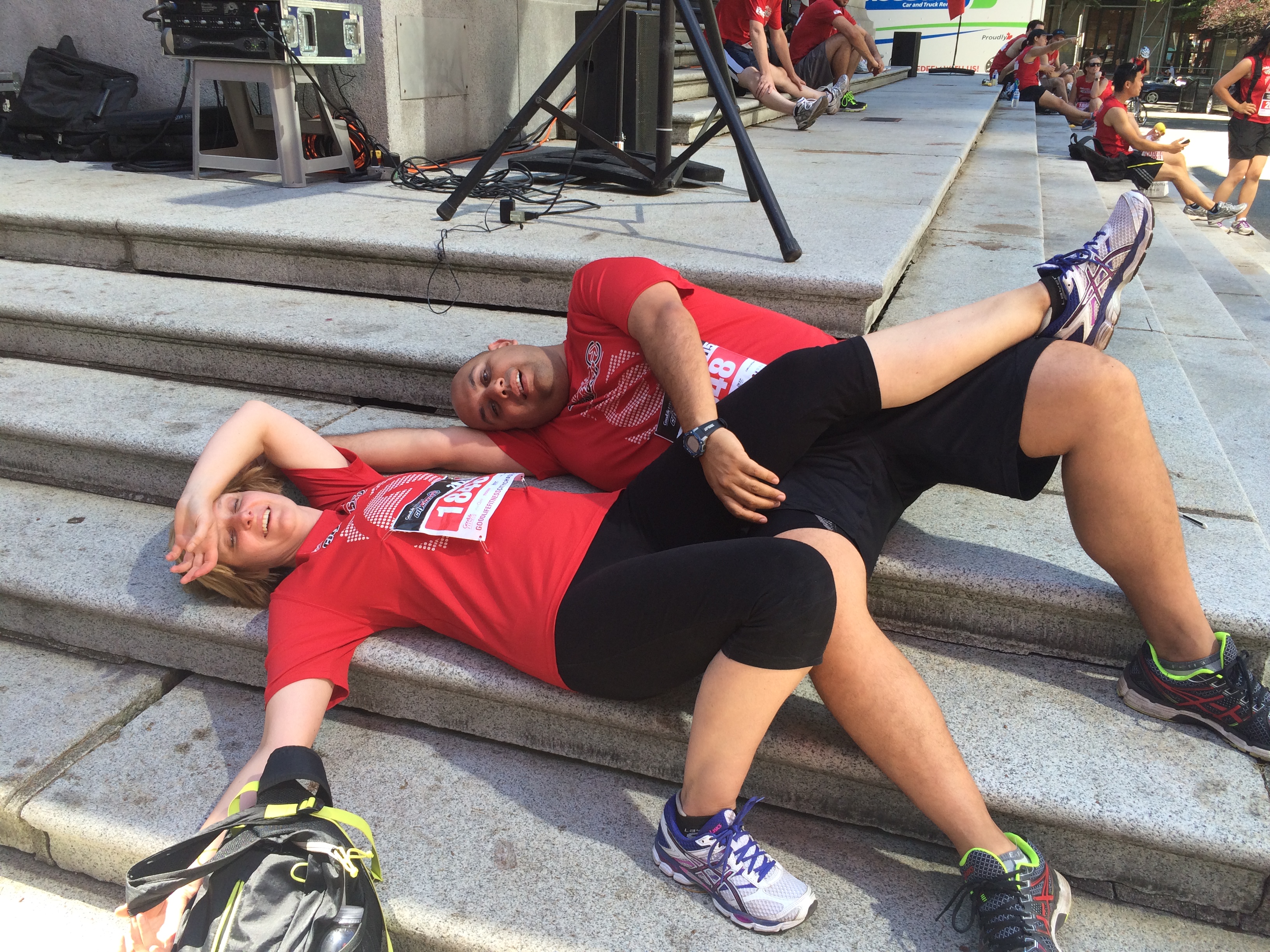 Our goal was to just cross the finish line before that 6-hour mark. I am not a runner but what I lacked in athleticism, we easily made up for with our smarts. We quickly solved the clues, we methodically planned the most efficient route, we were allowed to use smart phones so we easily figured out the buses that we needed to take. We completed the required 10 challenges, from pulling a bus to setting up a tent and then changing into each other’s sweaty clothes inside the tent in 30+degree weather, in approximately 4 hours and 40 minutes. And no, I did not get a picture of Armando in my clothes. I wish I would have but guaranteed I would not have received permission to post it here.